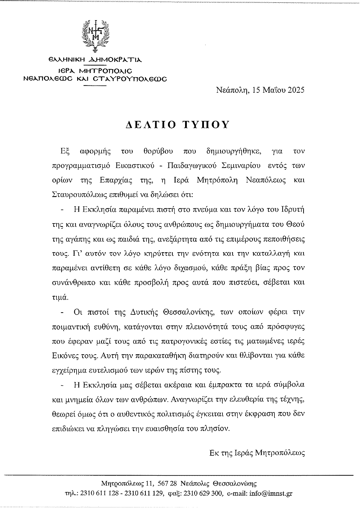 Ανακοινώσεις - Δελτία Τύπου Ανακοίνωση Ιεράς Μητροπόλεως Νεαπόλεως και Σταυρουπόλεως 26/03/2026 Posted by admin 15 Μάι