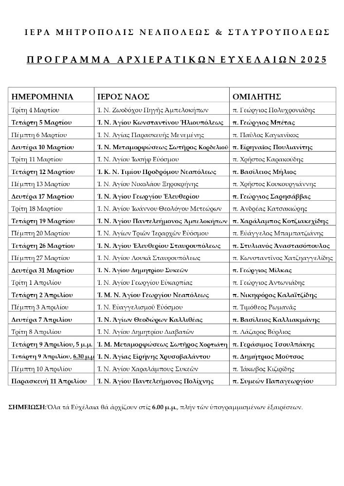 ΑΡΧΙΕΡΑΤΙΚΑ ΕΥΧΕΛΑΙΑ 2025