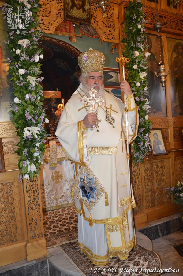 Ο Σεβασμιώτατος, στο κήρυγμά του, αναφέρθηκε στην έλευση του Αγιου Πνεύματος επί των Αποστόλων και στην αποστολή τους, στη συνέχεια, στα πέρατα του κόσμου.