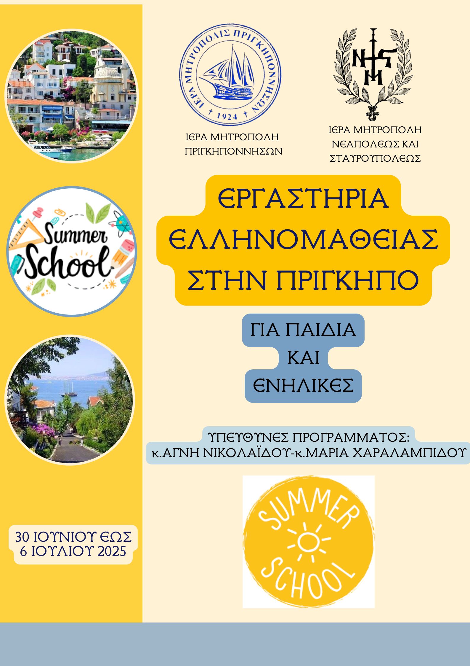 Εργαστήρια Ελληνομάθειας στην Πρίγκηπο Συνεργασία της Ιεράς Μητροπόλεως Πριγκηποννήσων με την Ιερά Μητρόπολη Νεαπόλεως και Σταυρουπόλεως