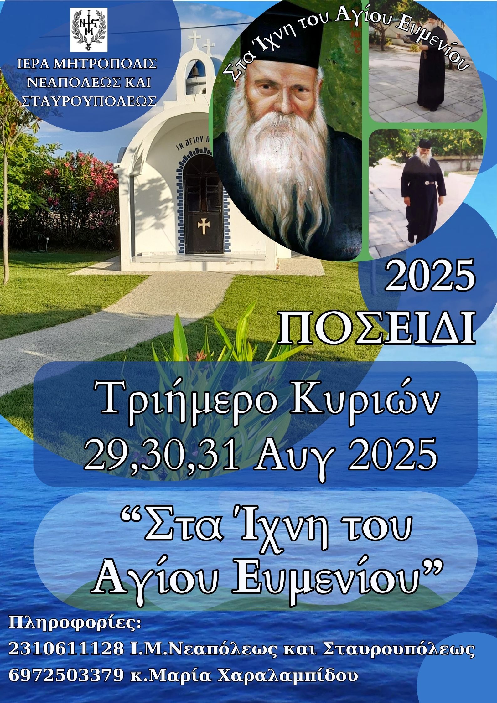 Ανακοινώσεις - Δελτία Τύπου Κατασκηνωτικό Τριήμερο Κυριών 29,30,31 Αυγούστου 2025 στο Ποσείδι “Στα Ίχνη του Αγίου Ευμενίου” 26/03/2026 Posted by admin 26 Μάι