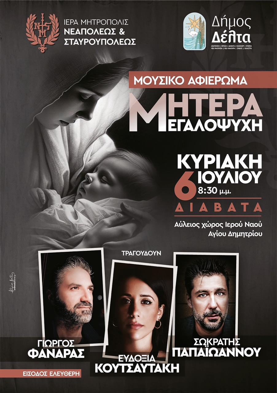 Μουσικό Αφιέρωμα “Μητέρα Μεγαλόψυχη” Κυριακή 6 Ιουλίου Ι.Ν.Αγίου Δημητρίου Διαβατών