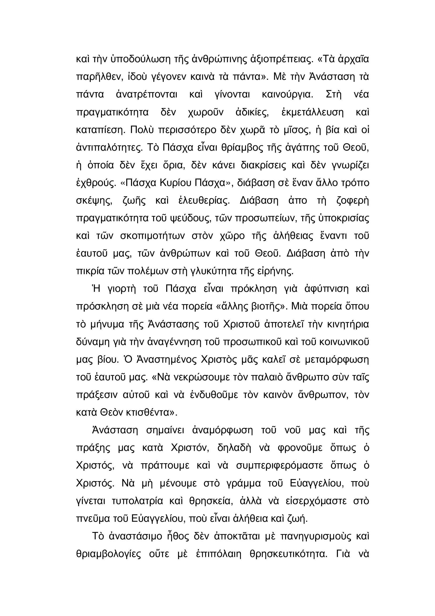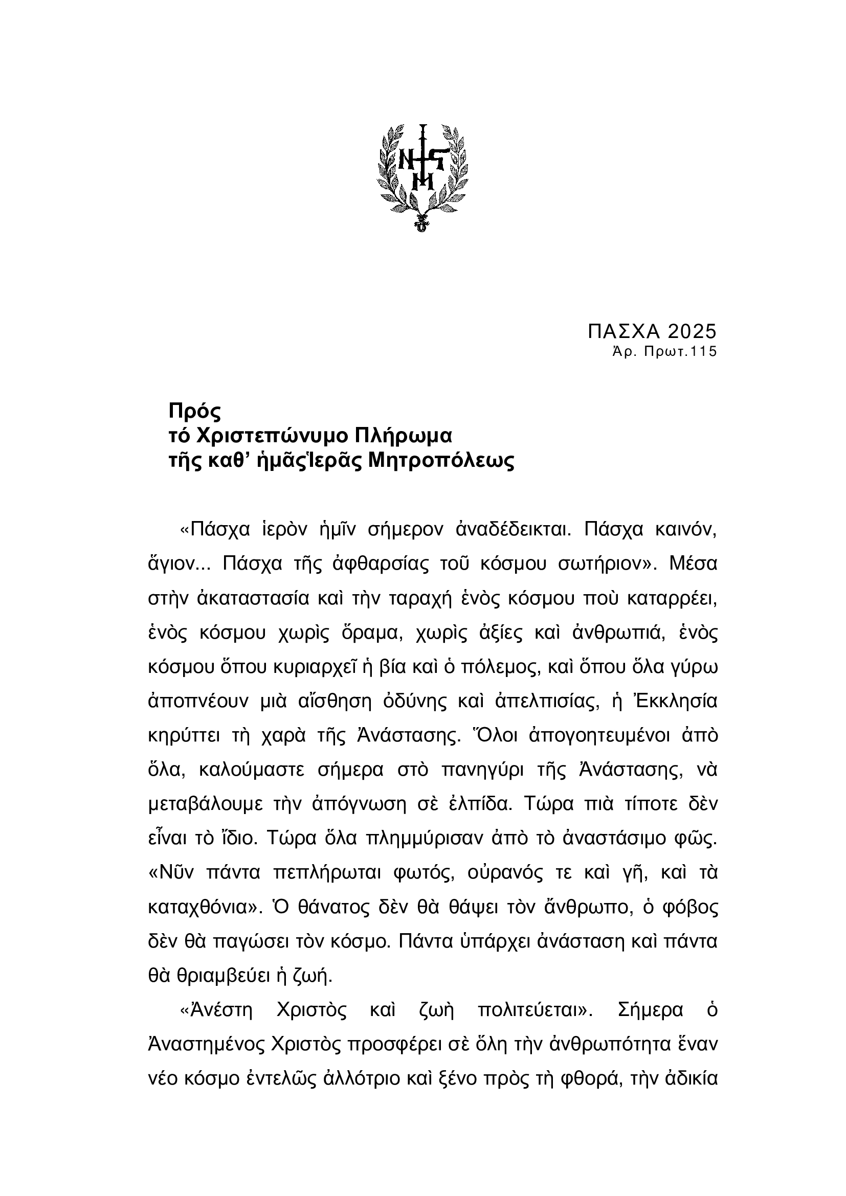 Πασχαλινή Εγκύκλιος Σεβασμιωτάτου