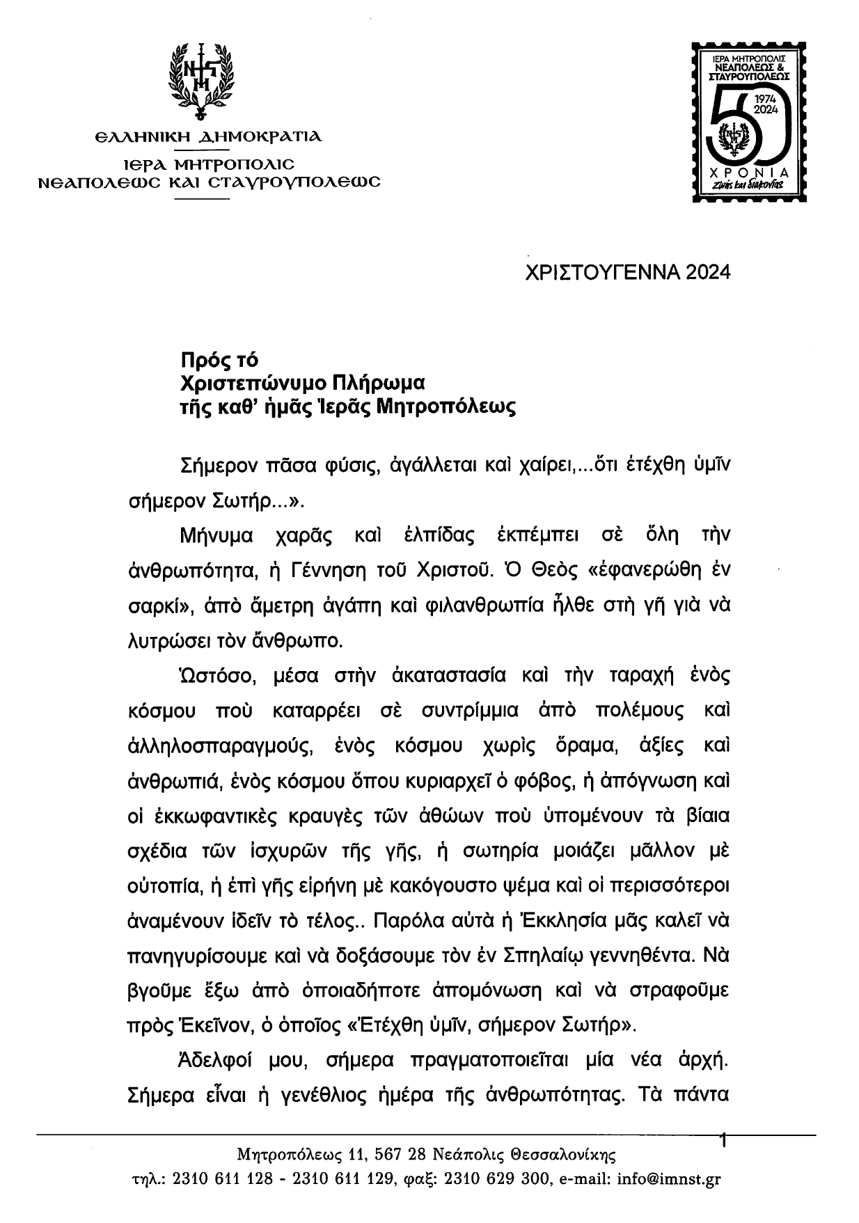 Εγκύκλιοι-Μηνύματα-Ομιλίες Χριστουγεννιάτικη Εγκύκλιος Σεβασμιωτάτου 15/02/2025 Posted by admin 24 Δεκ