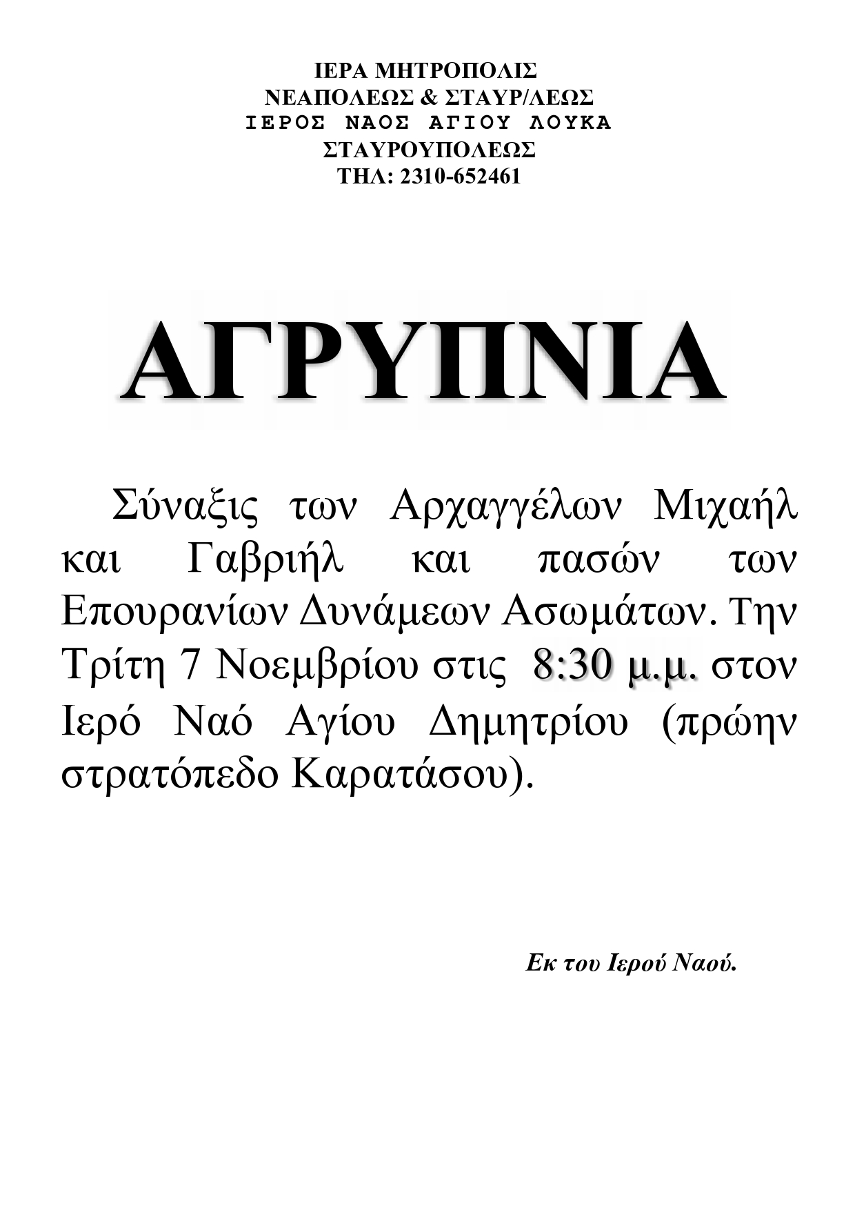 Χωρίς κατηγορία Αγρυπνία 7 Νοεμβρίου 2023 Ι.Ν.Αγίου Δημητρίου Καρατάσιου 02/08/2024 Posted by xk 04 Νοέ