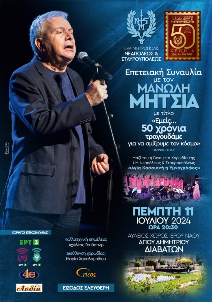 01 Ιούλ Ανακοινώσεις - Δελτία Τύπου Συναυλία με το Μανώλη Μητσιά και τη Γυναικεία Χορωδία της Ιεράς Μητροπόλεως “Αγία Κασσιανή η Υμνογράφος” την Πέμπτη 11 Ιουλίου 2024 στον Ι.Ν.Αγίων Αναργύρων Διαβατών ΕΙΣΟΔΟΣ ΕΛΕΥΘΕΡΗ 25/02/2025 By admin Περισσοτερα