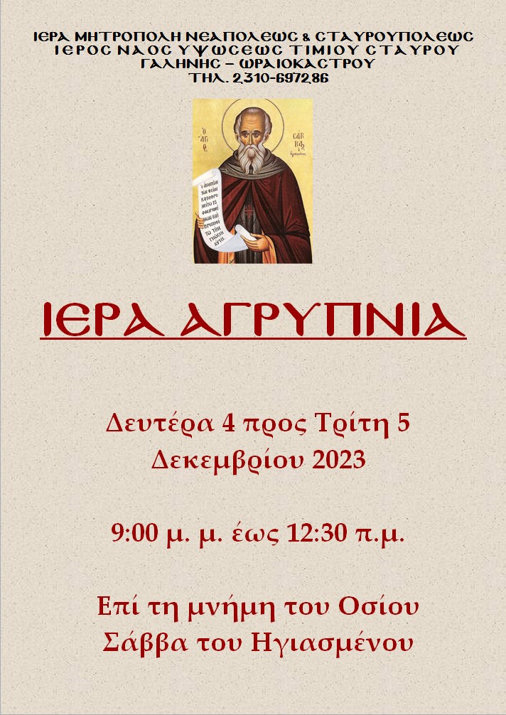 Η Ιερά Μητρόπολή Νεαπόλεως και Σταυρουπόλεως και η ενορία των Αγίων Γεωργίου και Ιωάννου του Χρυσοστόμου Νέας Ευκαρπίας...