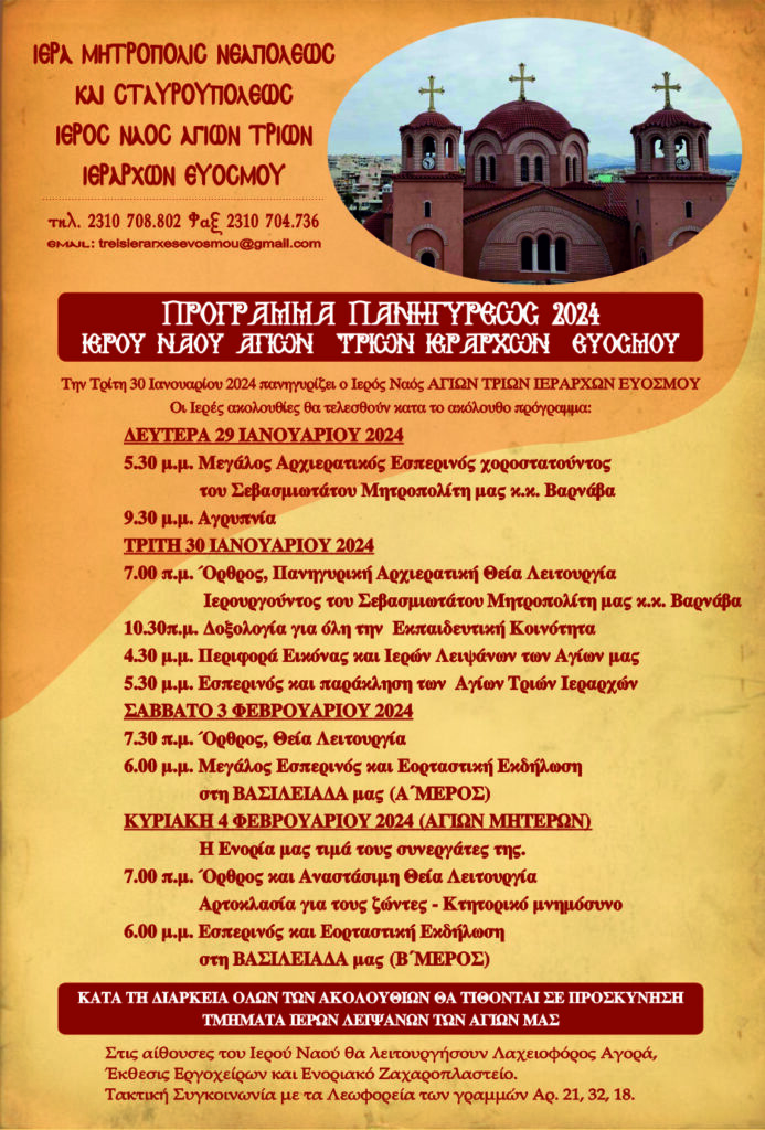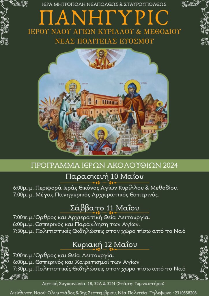 03 Μάι Ενοριακά Νέα Πανήγυρις Ι.Ν.Αγίων Κυρίλλου και Μεθοδίου Νέας Πολιτείας Ευόσμου- Αφίσα- Πρόσκληση- Πολιτιστικές Εκδηλώσεις 02/08/2024 By xk Περισσοτερα