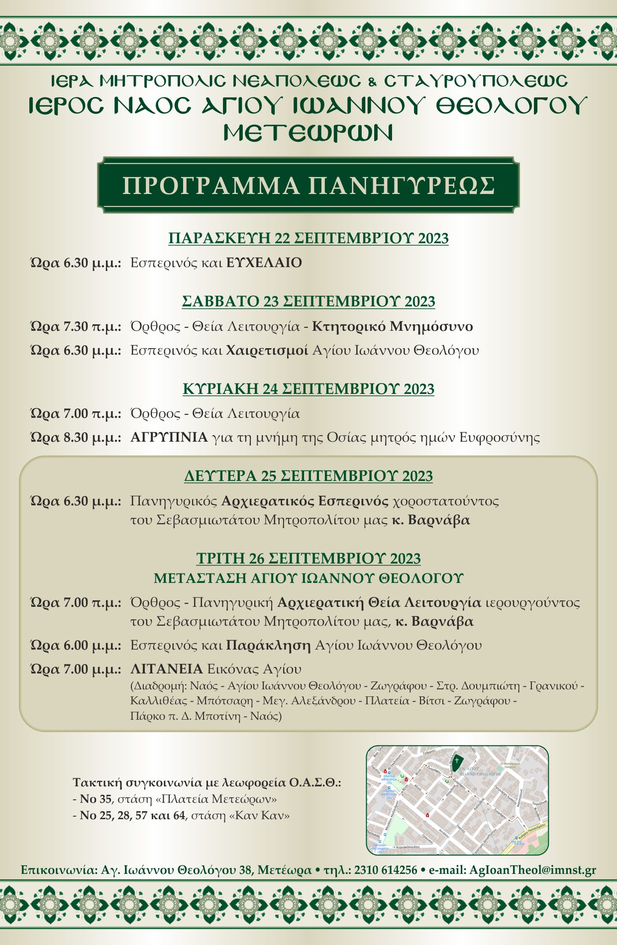 Χωρίς κατηγορία Ι.Πανήγυρις Ι.Ν.Αγίου Ιωάννου Θεολόγου Μετεώρων 02/08/2024 Posted by Γραφειο τύπου 18 Σεπ