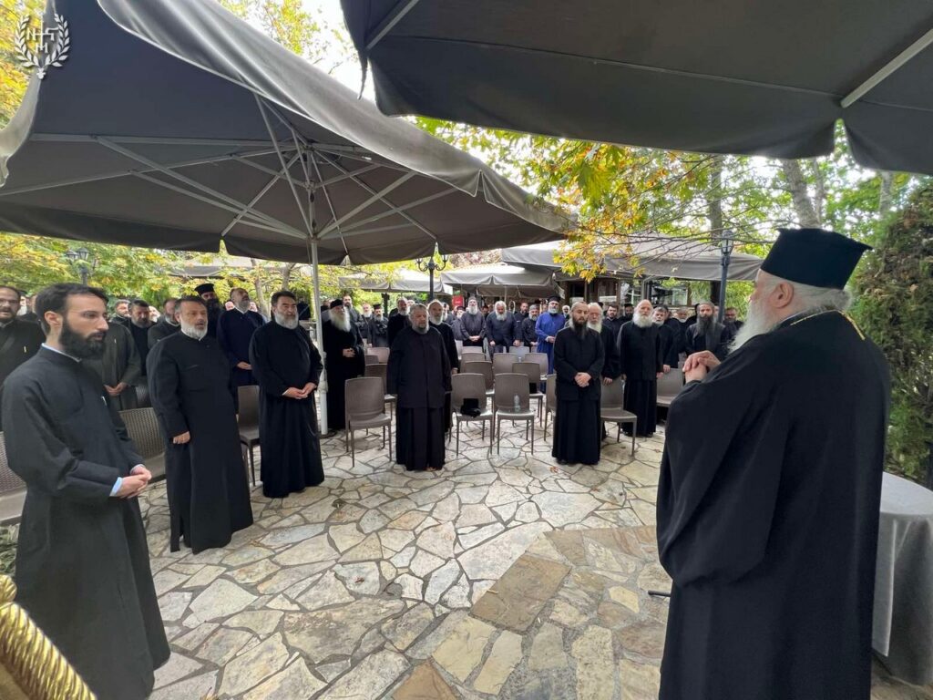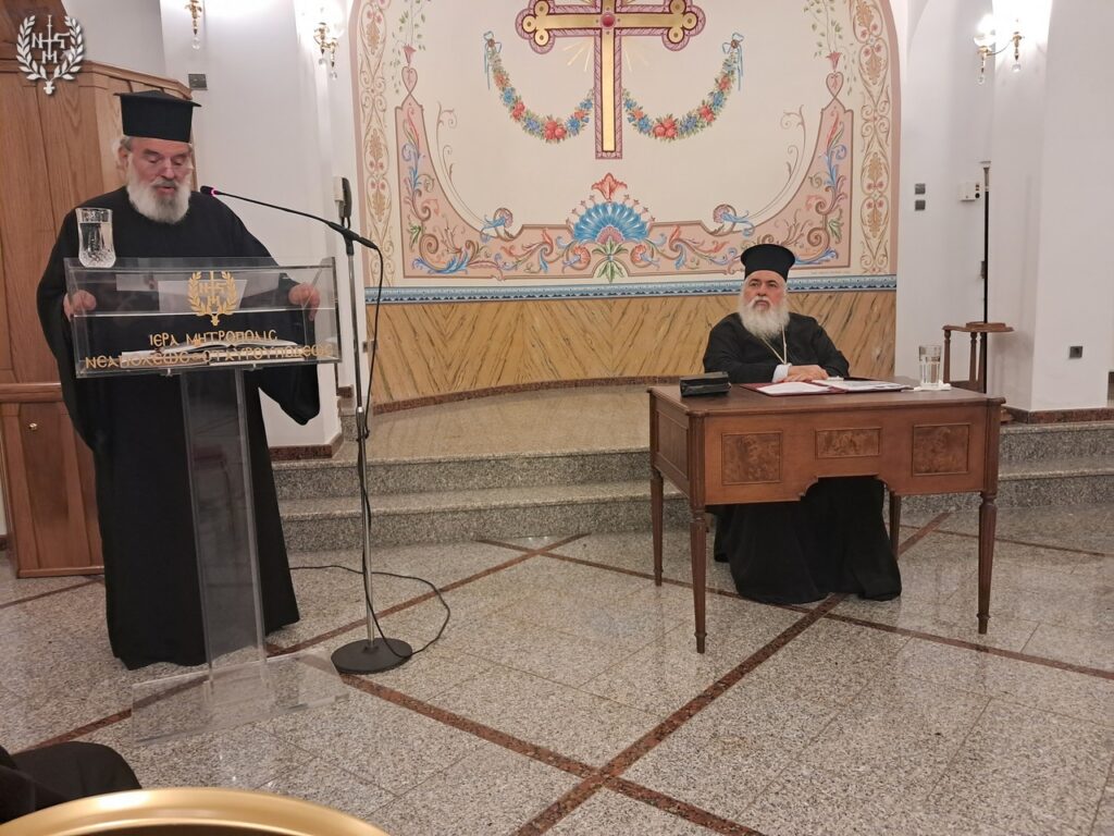 Στο τέλος της Σύναξης, ο Σεβασμιώτατος κ. Βαρνάβας δώρισε στους πατέρες από ένα δερματόδετο επετειακό Ιερατικό, με αφορμή την συμπλήρωση 50 ετών από την ίδρυση της Ιεράς Μητροπόλεως Νεαπόλεως και Σταυρουπόλεως (1974-2024).